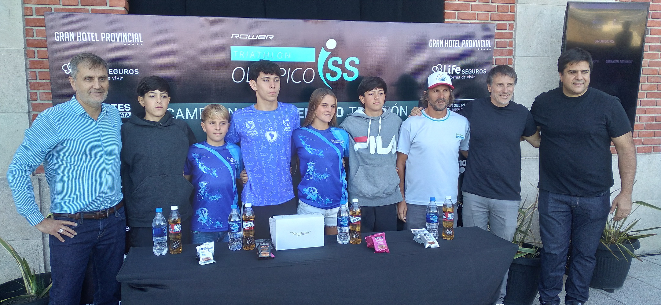 En la presentación estuvieron el presidente del Ente Municipal de Deportes, Sebastián D’ Andrea; el presidente de la Asociación Marplatense de Atletismo, Enrique Fernández Puentes; y jóvenes triatletas marplatenses de la Escuela Municipal de Triatlón acompañados por su coach, Christian Carletto, uno de los locales que correrán el domingo.