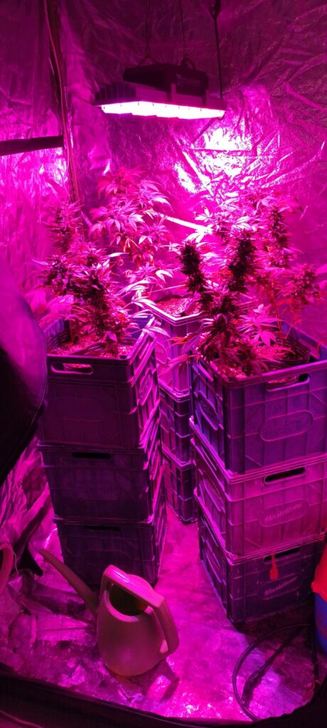 La Estación de Policía Comunal de Santa Clara del Mar llevó a cabo una diligencia judicial de registro y allanamiento en una vivienda de la calle Barranca De los Lobos, donde se desarticuló un punto de cultivo de marihuana.