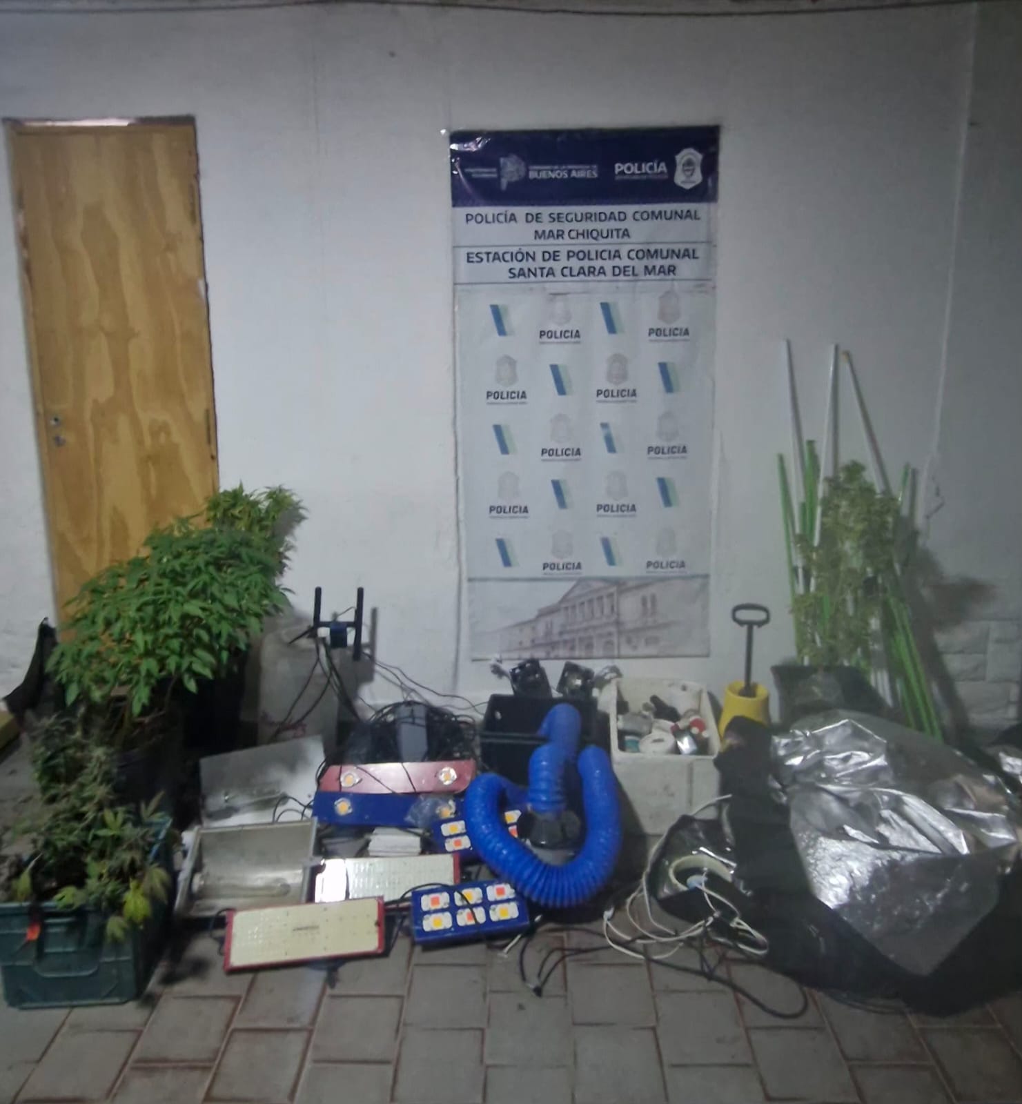 La Estación de Policía Comunal de Santa Clara del Mar llevó a cabo una diligencia judicial de registro y allanamiento en una vivienda de la calle Barranca De los Lobos, donde se desarticuló un punto de cultivo de marihuana.