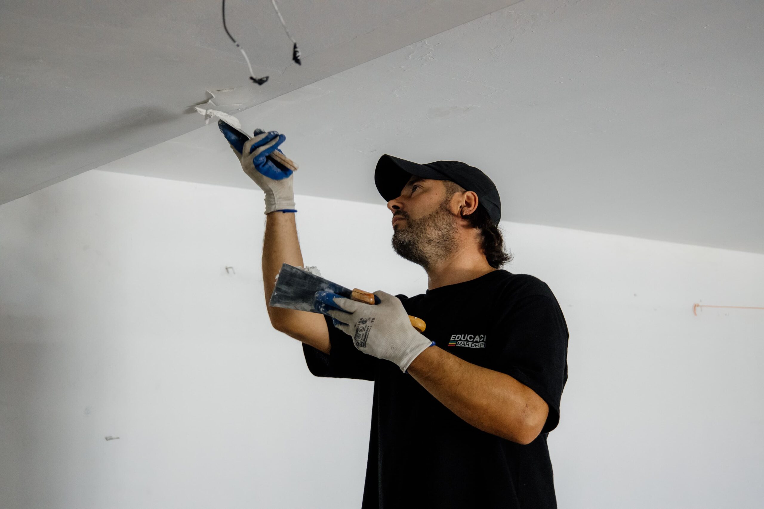 - Jardín 10 (Tripulantes del Fournier y Dellepianne), barrio El Progreso: Colocación de membrana aluminizada en claraboya del baño y se quitó material desprendido en la losa del baño para realizar cielorraso con placa de durlock.