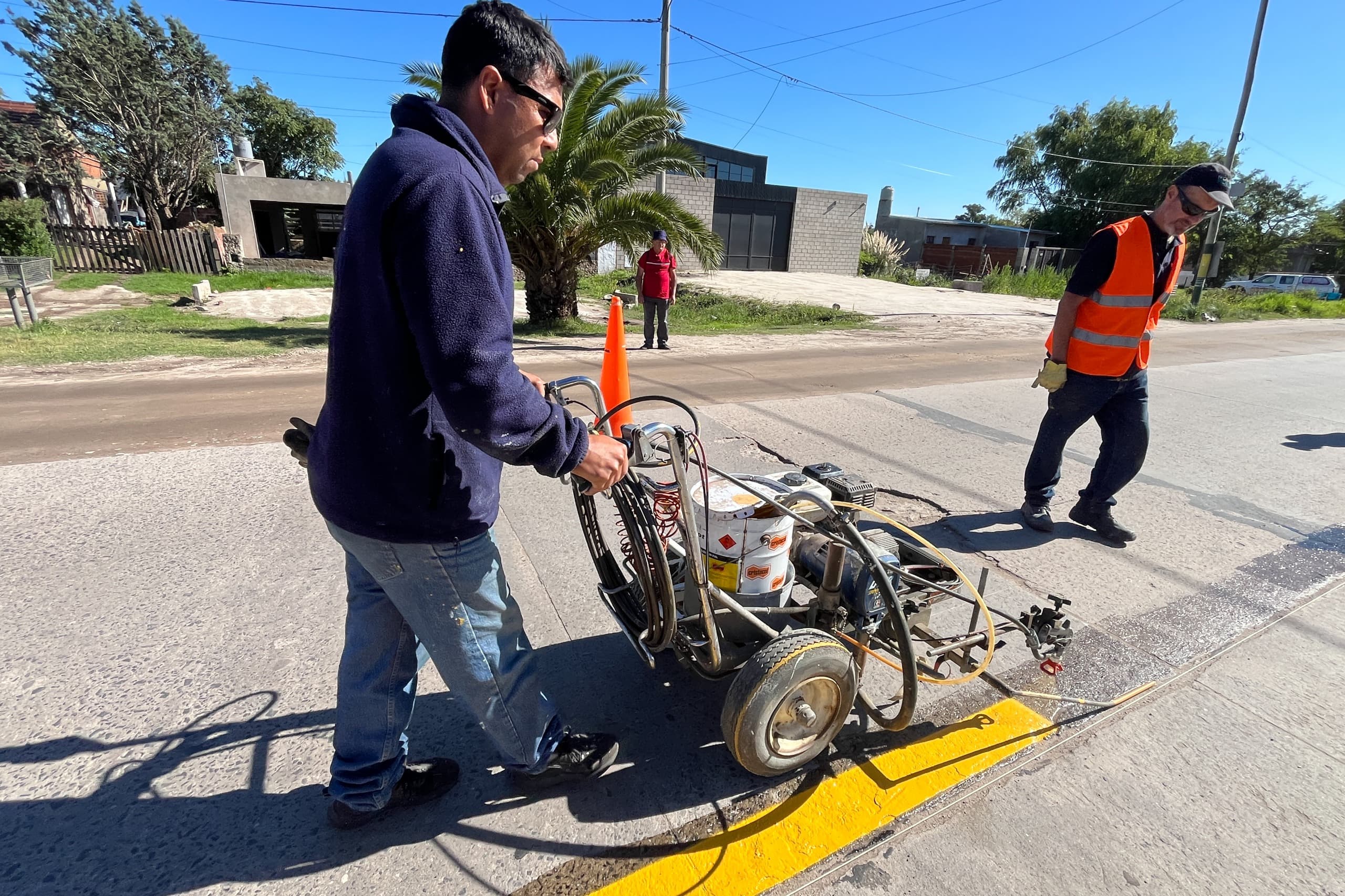 La señalética se completó con la demarcación en caliente de sendas peatonales, líneas divisorias de carril, líneas de frenado y flechas indicadoras de giro. En los próximos días se instalarán las señales de cartelería vial.