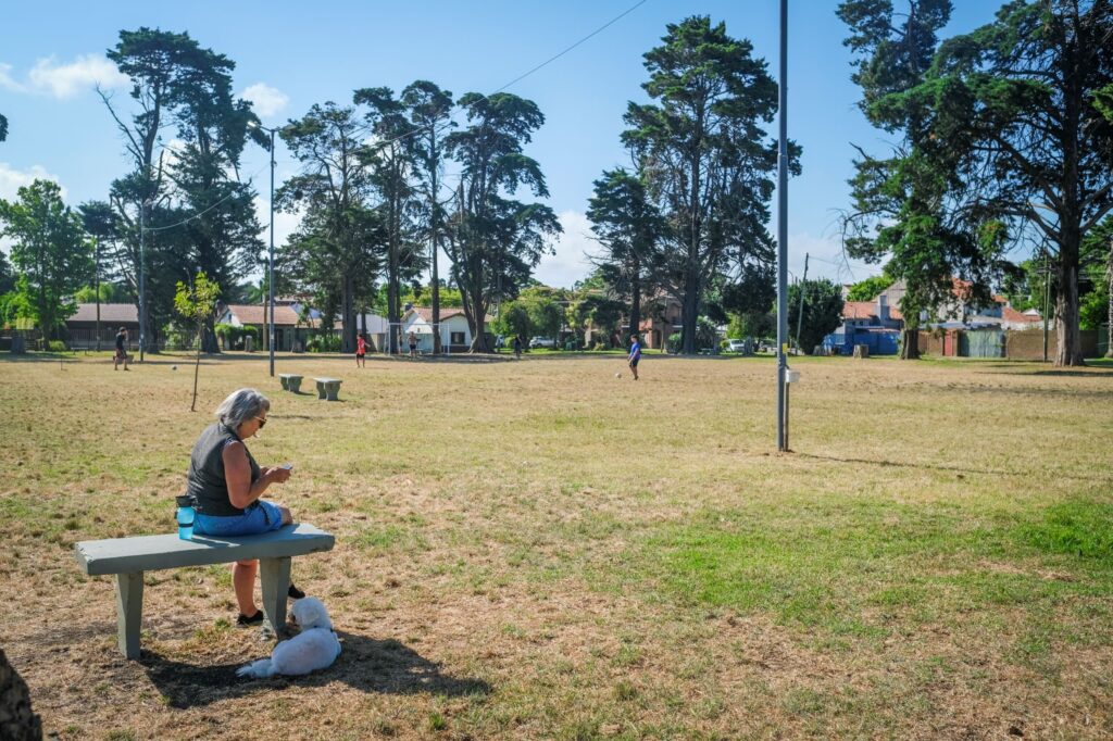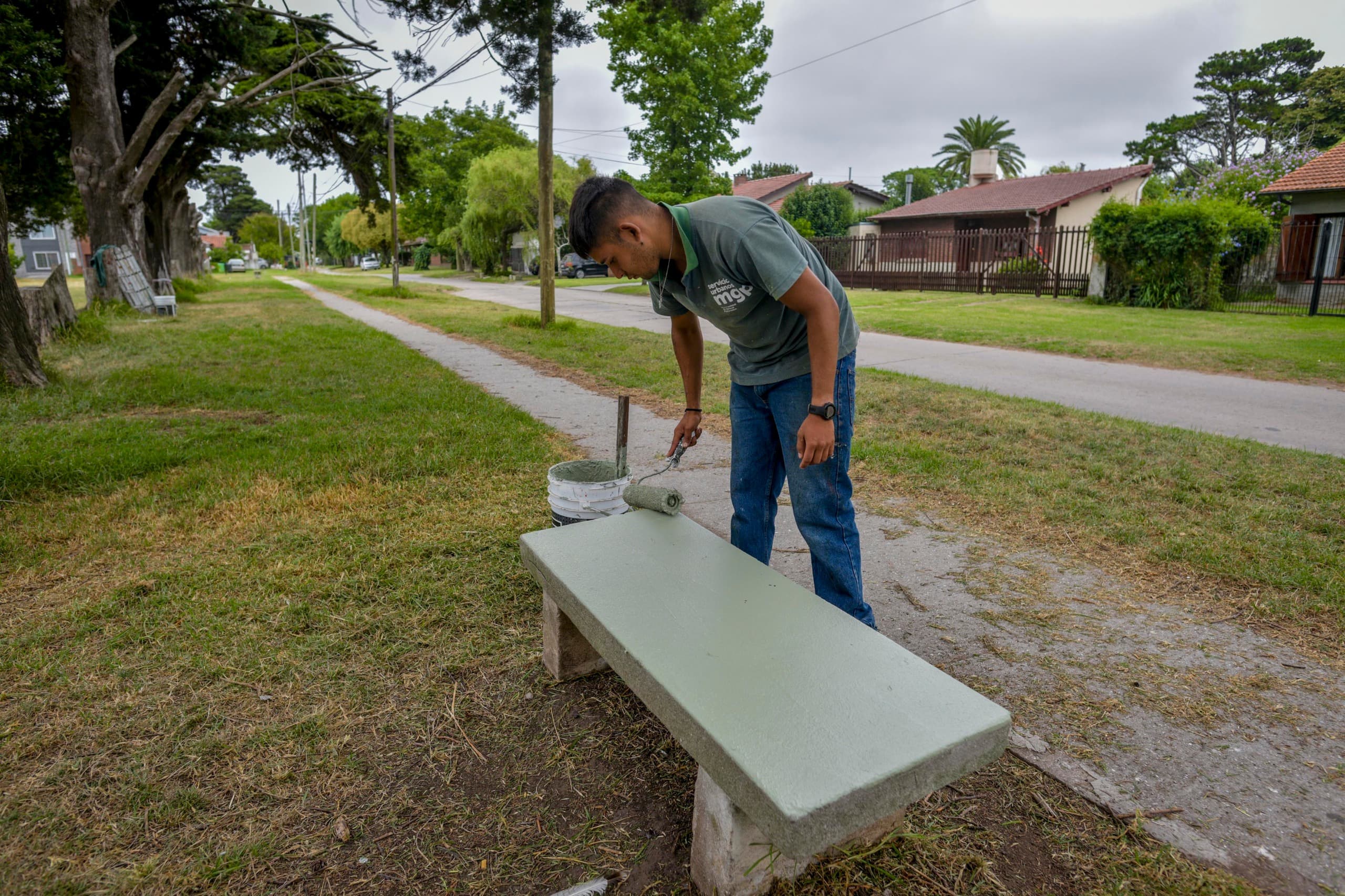 En cuanto a la infraestructura y servicios, se procedió al despeje de luminarias para mejorar la visibilidad y se realizaron trabajos de herrería y pintura en los arcos de juego. Complementariamente, el personal del Ente trabajó en el arreglo y mantenimiento de los bancos de la plaza, aplicando tareas de pintura para su preservación.