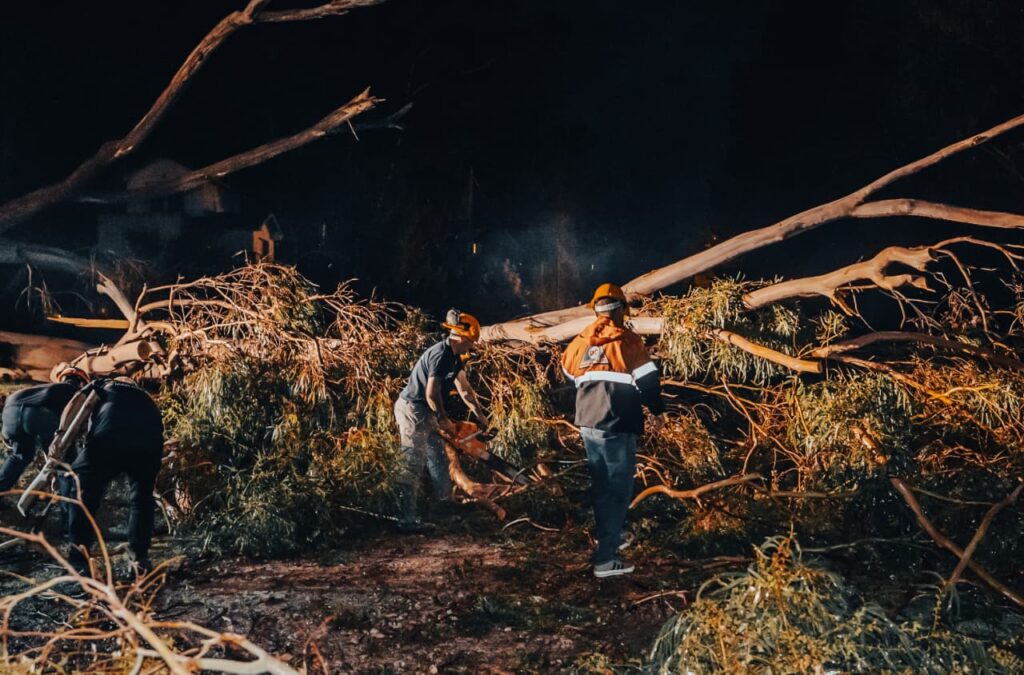 En detalle, se registraron: 6 voladuras de techos, alrededor de 27 cables caídos (los cuales se trabajan con las empresas prestadoras de servicio), 53 árboles caídos, 40 intervenciones directas, además de otras situaciones relacionadas con alumbrado público, arbolado y servicios afectados.