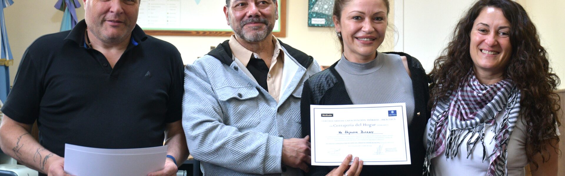 El intendente interino del Partido de Mar Chiquita, Fabián Jacquet, encabezó la entrega de certificados a las egresadas de la Escuela de Cerrajería para mujeres, una iniciativa que ha sido declarada de interés municipal. Las mujeres que culminaron el curso que brindó Julio Mellado son Mar Bautista; María Alejandra Bureaux, Jesica Dellepiane, y Margarita Mercedes Zuñiga Galaz.