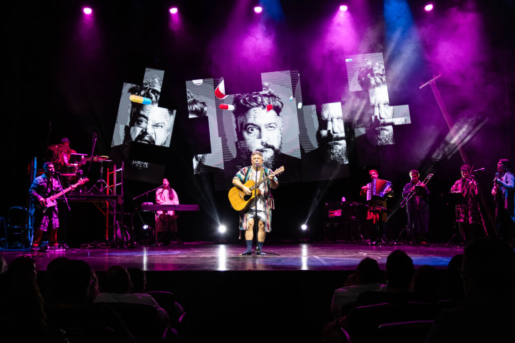 El espectáculo es una línea histórica a través de los momentos que marcaron a fuego a su protagonista y a casi cualquiera que esté en la sala. Nacer, enamorarse, ser padre, envejecer y morir.