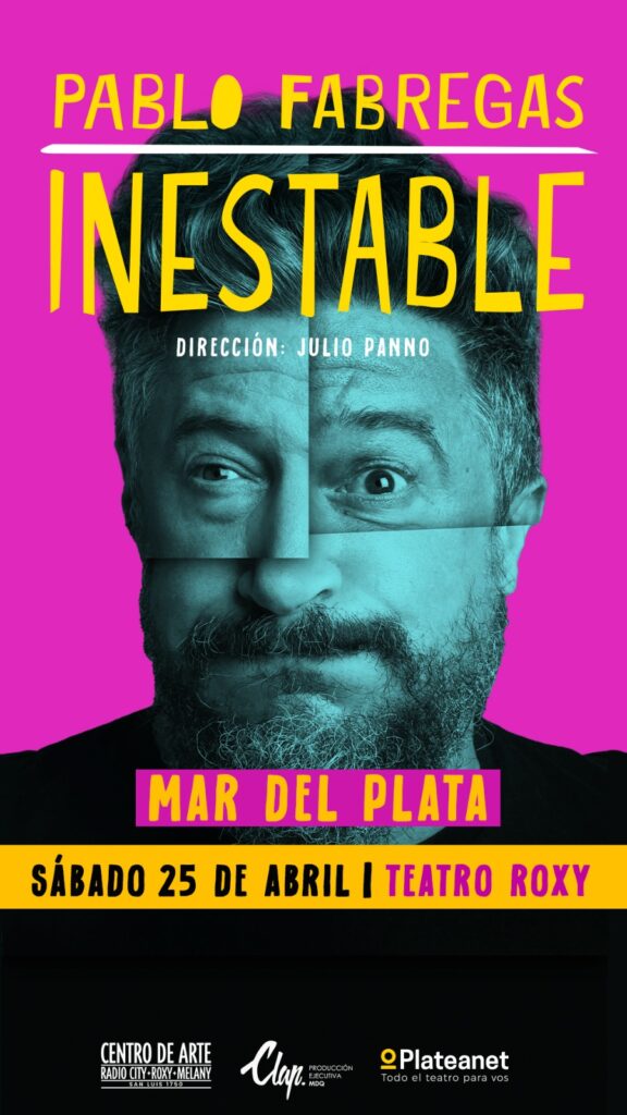 “Inestable” es el nombre del espectáculo del comediante Pablo Fábregas que en la gira despedida del show se presentará en Mar del Plata el sábado 25 de abril a las 21 en el Centro de Arte Radio City Roxy (San Luis 1750).