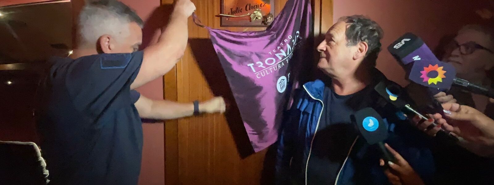 Julio Chávez fue homenajeado este viernes por iniciativa de Marcelo González en el Teatro Tronador BNA – donde se encuentra actualmente protagonizando “La Ballena – mediante el bautismo de uno de los palcos de esta emblemática sala con su nombre.