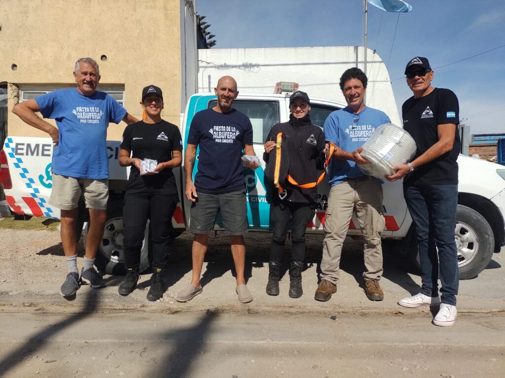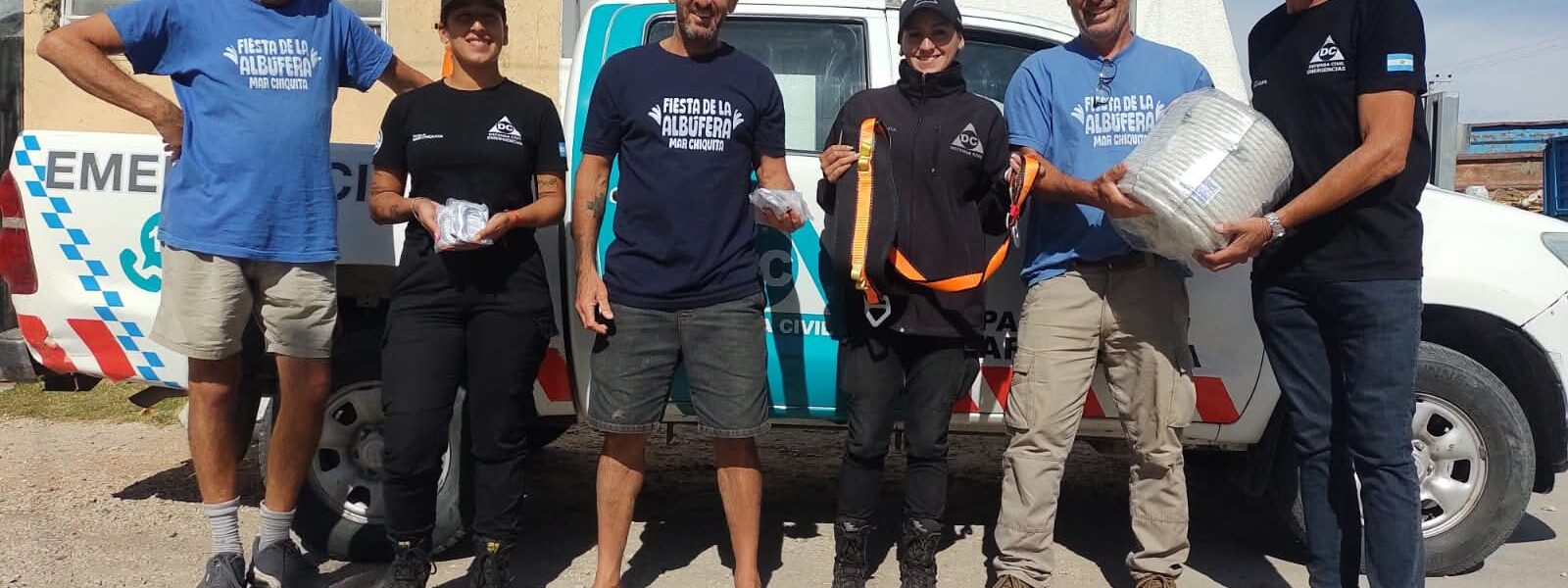 La comisión organizadora de la Fiesta de la Albufera de Mar Chiquita realizó una importante donación a Defensa Civil Mar Chiquita. Los elementos donados incluyen una cuerda de 13 MM de 120 metros, 10 mosquetones ovalados a rosca y un cinturón de seguridad Liniero.