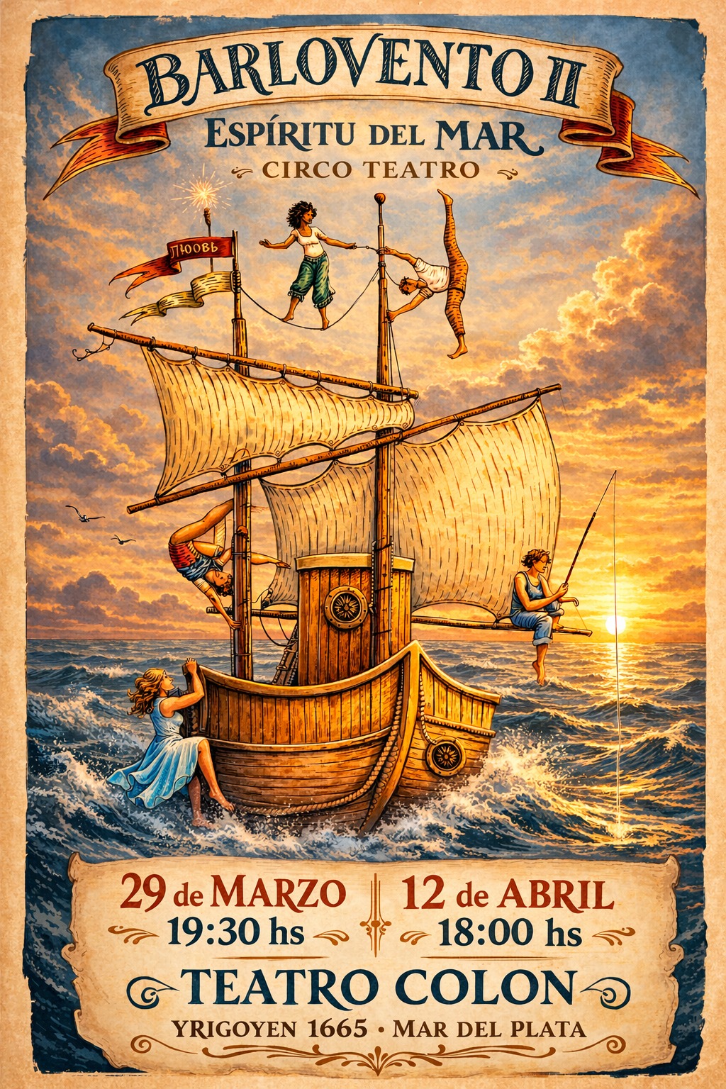 El 29 de marzo a las 19:30 y el 12 de abril a las 18:00 hs, en el Teatro Municipal Colón (Hipólito Yrigoyen 1665), la compañía Barlovento presenta “Barlovento II: Espíritu del Mar”, una propuesta de circo- teatro que combina humor, poesía y una fuerte impronta visual.
