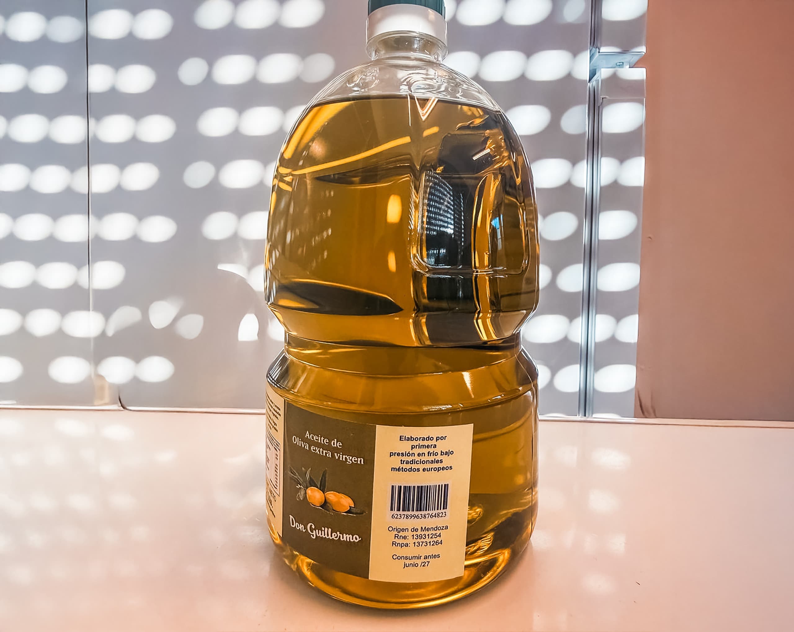 *Aceite de oliva extra virgen marca Don Guillermo, origen Mendoza, RNE N° 13931254, RNPA N° 13731264. Su comercialización fue prohibida mediante la Disposición 6610/2024 de la ANMAT por carecer de registros sanitarios de establecimiento y producto y por estar falsamente rotulado, resultando en consecuencia un producto ilegal.