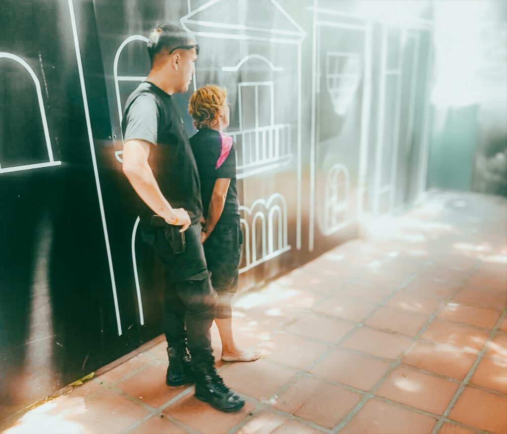 Al arribar al lugar, el personal constató la presencia de una mujer que -al ser despertada- adoptó una actitud hostil hacia el personal municipal y policial que intervino en el procedimiento. La situación se tornó violenta durante la identificación y control preventivo, produciéndose una agresión hacia una mujer policía.