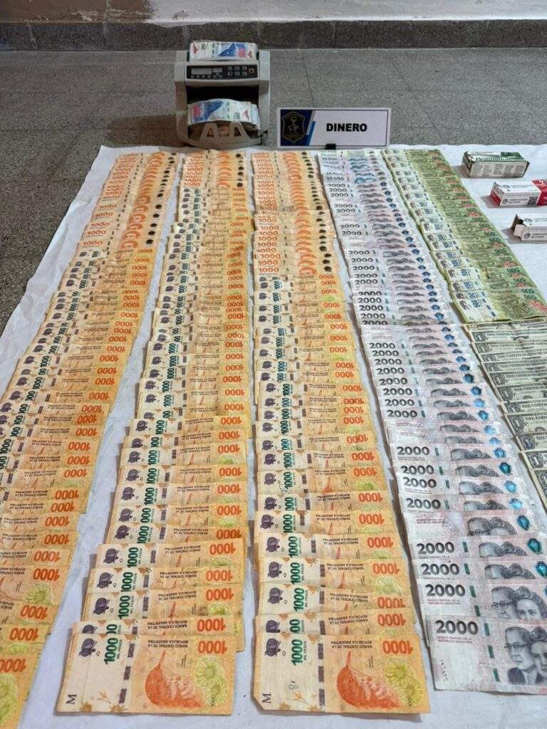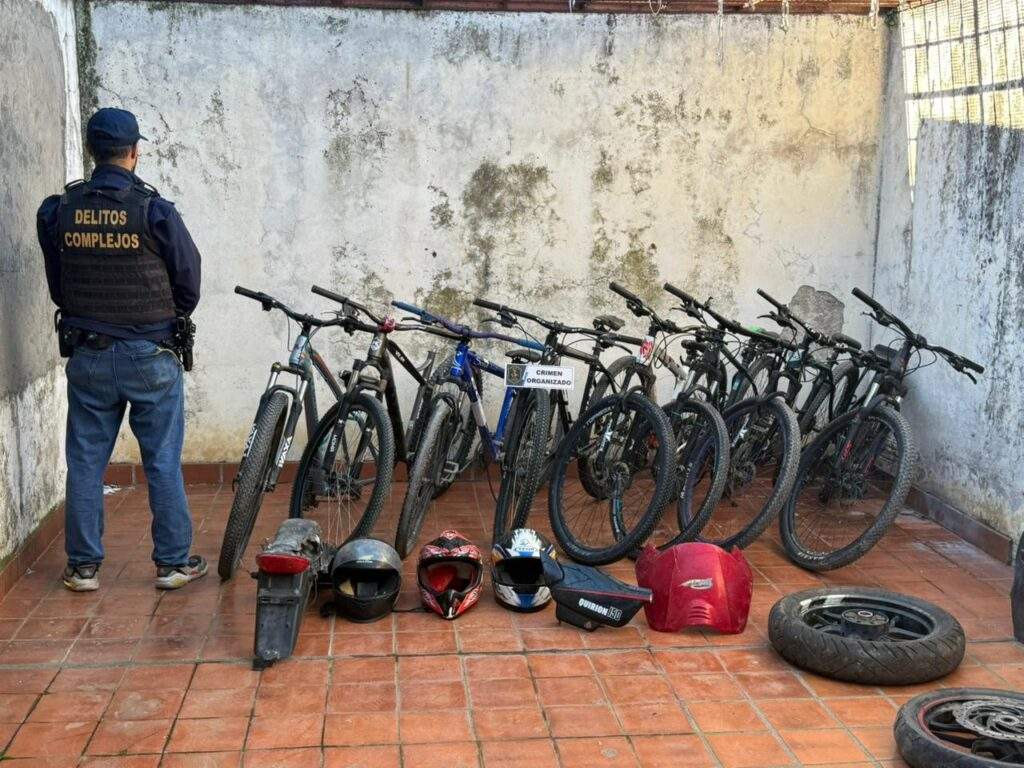 Entre los bienes secuestrados figuran un vehículo Volkswagen Gol, autopartes varias, 38 teléfonos celulares, 5 balanzas digitales, un inhibidor de señal, dispositivos electrónicos, indumentaria con insignias policiales, herramientas, recortes de nylon utilizados para fraccionamiento de estupefacientes, 8 bicicletas y $386.650 en efectivo.