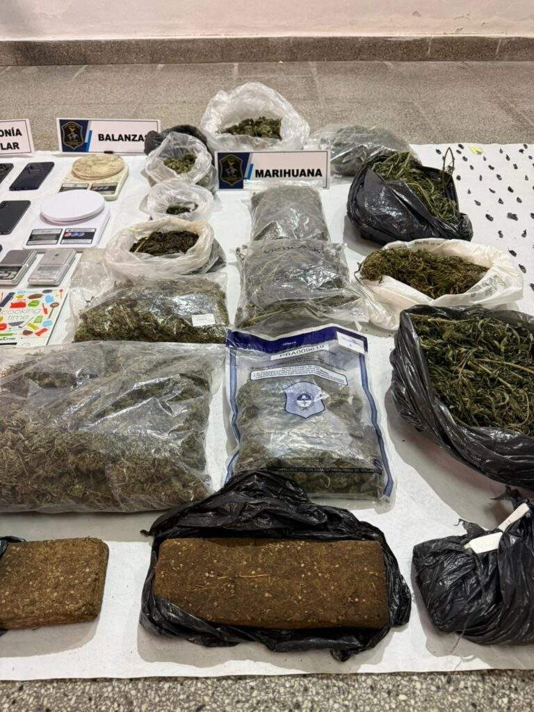 Durante los procedimientos se secuestró una importante cantidad de droga: más de 770 gramos de clorhidrato de cocaína fraccionada en dosis, más de 5,5 kilogramos de marihuana fraccionada y compactada, y más de 36 kilogramos de plantas de cannabis.