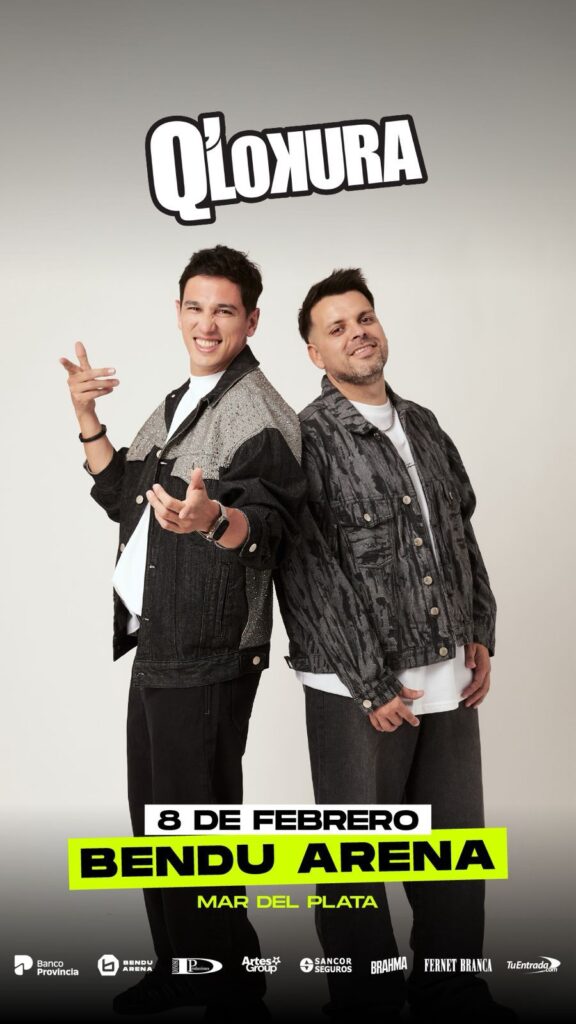 Q’Lokura se presentará el 8 de febrero a las 21 en Bendu Arena, el nuevo multiespacio de espectáculos de Mar del Plata ubicado en la intersección de Avenida Juan B. Justo y Avenida de los Trabajadores. El show marcará la llegada del grupo cordobés a uno de los escenarios centrales de la temporada de verano en la ciudad.