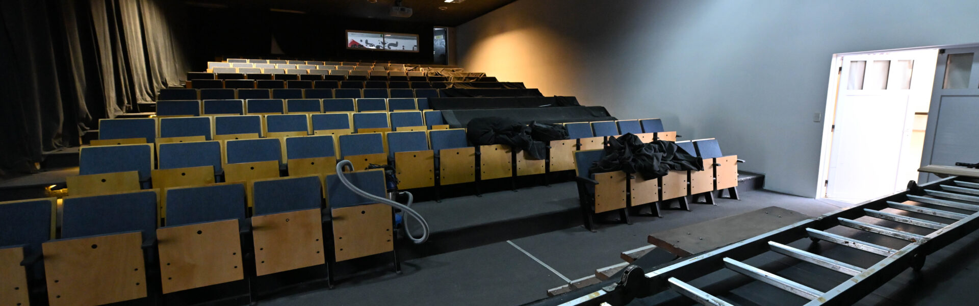 Asimismo, se está realizando un refuerzo estructural en el escenario. A esto se suma la incorporación de una escalera existente que fue adosada como estructura fija dentro del escenario, con trabajos de modificación y fijación para garantizar su correcta funcionalidad.