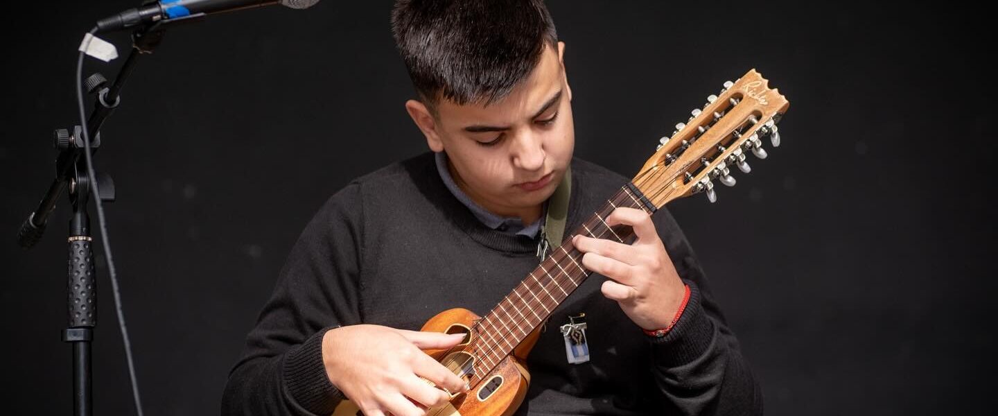 La historia de Tomás con el charango, comenzó a través de un viaje familiar que resultaría decisivo. «El charango llega a mi vida porque mi hermana siempre me hacía escuchar música del altiplano, los Tekis, Jaime Torres y otros», recuerda el joven artista en Stream Radio La Voz de Mar Chiquita. Pero fue la experiencia de visitar el norte argentino lo que selló su destino. «En un viaje que hicimos a Salta y Jujuy yo le dije a mi familia: ‘No me voy de acá sin que me compren un charango'». Ese deseo se cumplió, y a la semana de regresar a Coronel Vidal, Tomás comenzó a tomar clases con un profesor de guitarra. Reconoce que al principio el aprendizaje fue un desafío, como todo, pero su dedicación nunca flaqueó, alimentada por su constante escucha de música del altiplano y folklore.