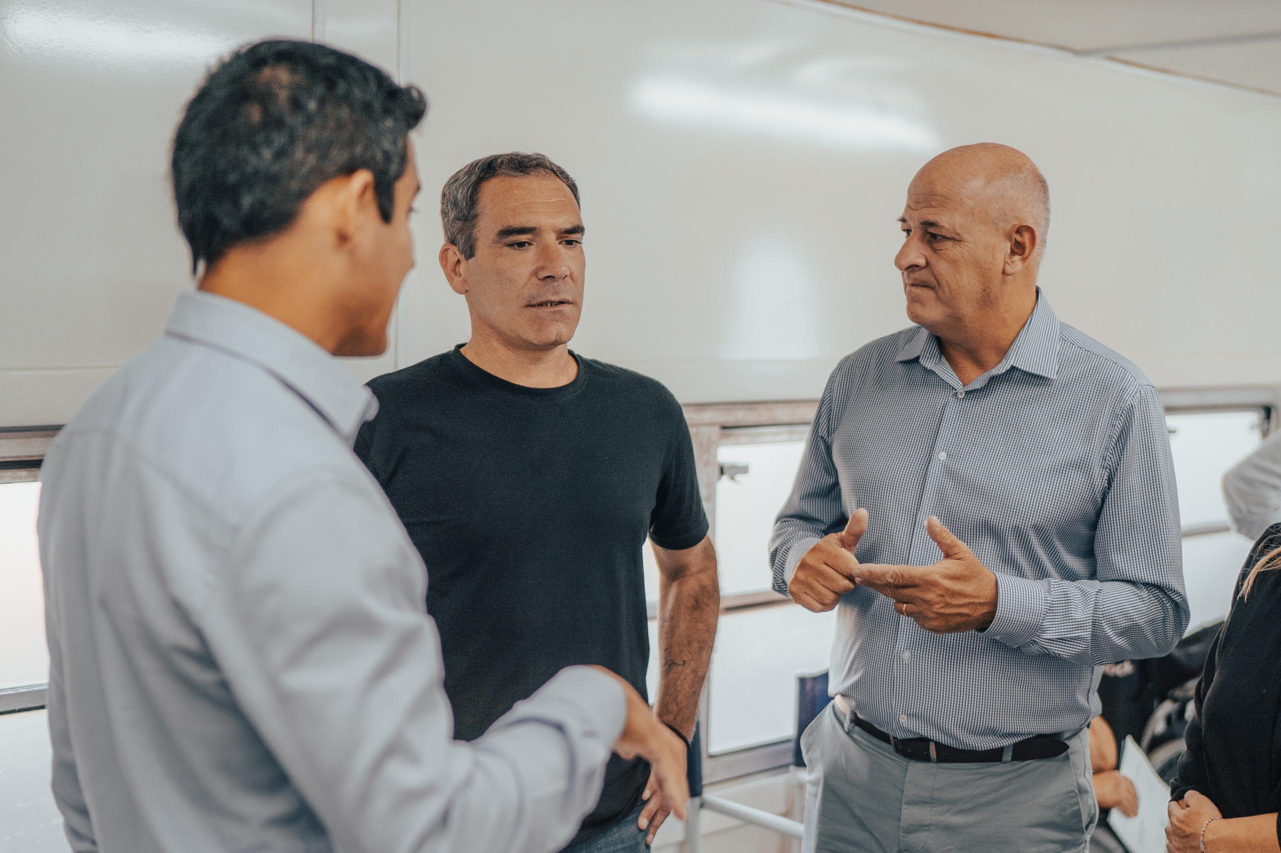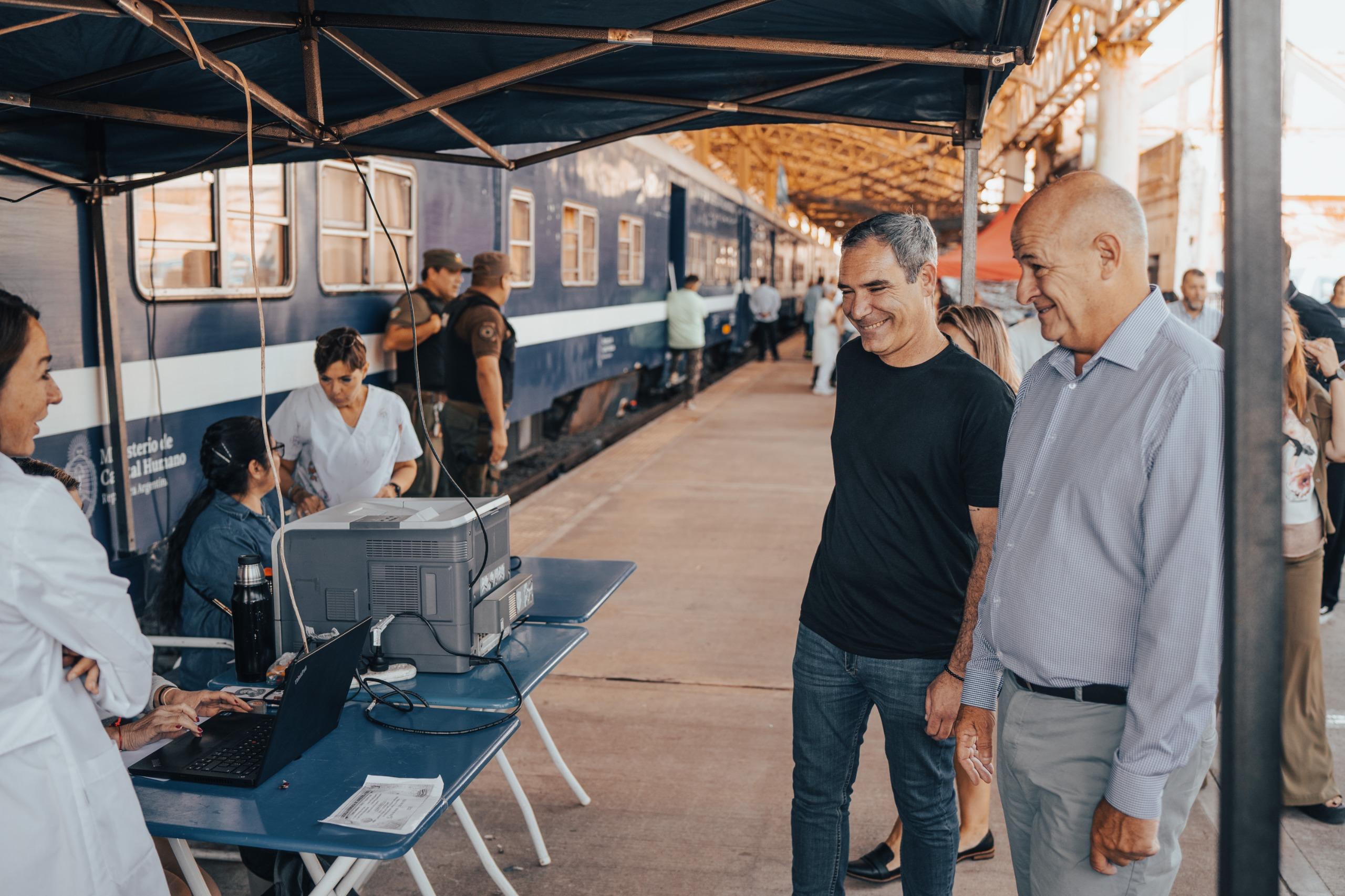 El intendente Agustín Neme acompañó a Mariano Uset, subsecretario de Políticas Territoriales y Desarrollo Humano de Nación, durante la recorrida por el Tren de Capital Humano “9 de julio” en la Estación Ferroautomotora, con ingreso por Luro e Italia.