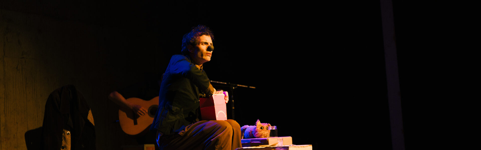 Una cáscara de banana en el centro de la escena, un payaso, y una caminata directa a «la trampa»…. La obra plantea preguntas como: ¿Qué es un payaso que deja de pisar la cáscara de banana? ¿Es un payaso o una persona que viste ropas holgadas? ¿Y si pisa noche tras noche la misma cáscara de banana sin preguntarse por qué? ¿Es un payaso, o una persona que usa zapatos grandes?